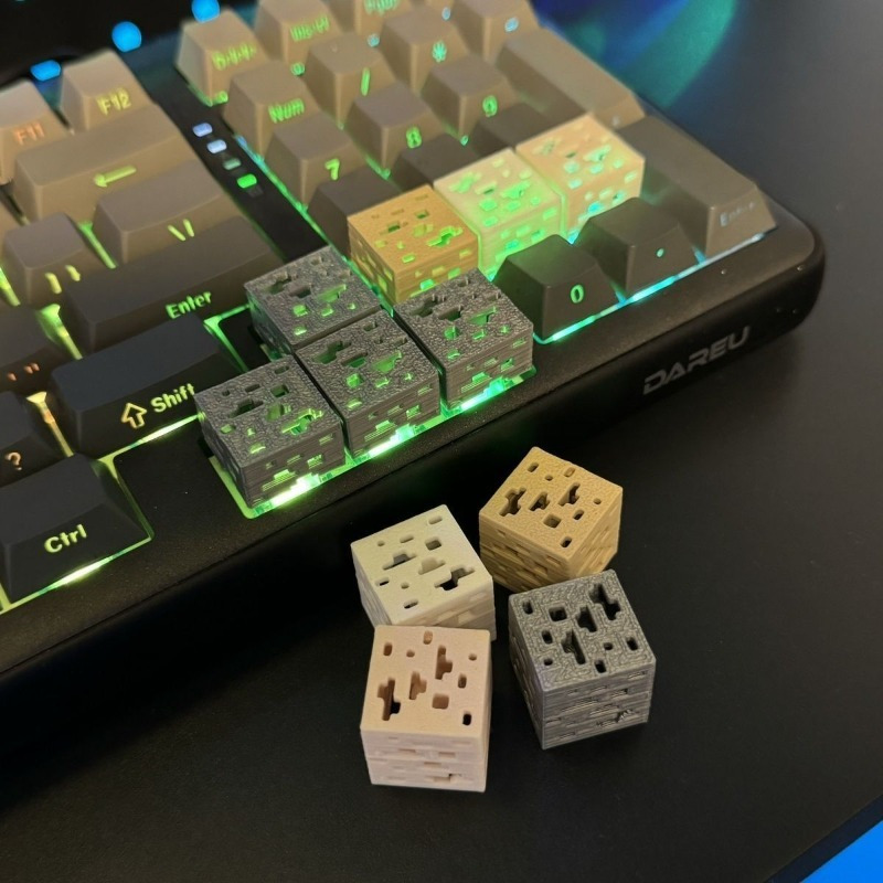 Цей декоративний елемент для механічної клавіатури виготовлений із прозорого та міцного пластику, що забезпечує тривале використання без втрати форми та кольору. Завдяки особливій конструкції поверхня клавіші легко контактує з перемикачами, що гарантує надійне кріплення та комфортне натискання. Об’ємний дизайн імітує популярні ігрові блоки, що дозволяє додати робочому місцю або ігровій станції яскравого акценту.