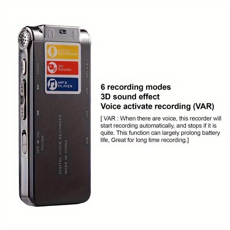 Універсальний цифровий диктофон з пам’яттю 8 ГБ поєднує якісний запис звуку, MP3-відтворення та зручне управління. Добре підходить для навчання, роботи, інтерв’ю або прослуховування музики. Оснащений вбудованим динаміком, функцією голосової активації та підтримкою кількох мов.